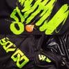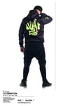Green on black futurist remix of the old chrome hoodie series in 2009. with pullover type and half zipped on the neck